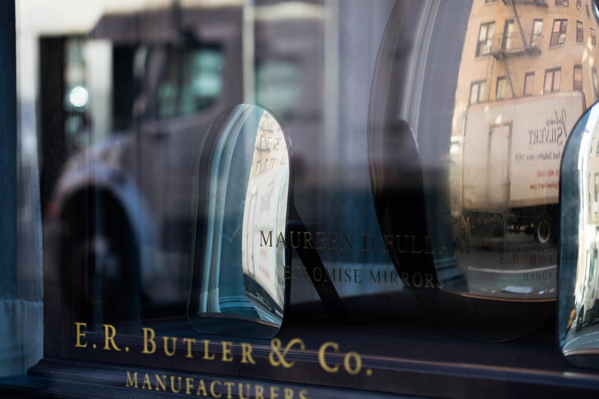 Maureen Fullam has been incorporating the technique of reverse gilding and painting on glass, known as Verre Eglomise, since the late nineteen eighties. During this time she has worked with premiere architects, designers and world-class decorators executing extraordinary commissions and special projects. These have ranged from small decorative objects, custom furniture, to mirrored wall and ceiling installations.